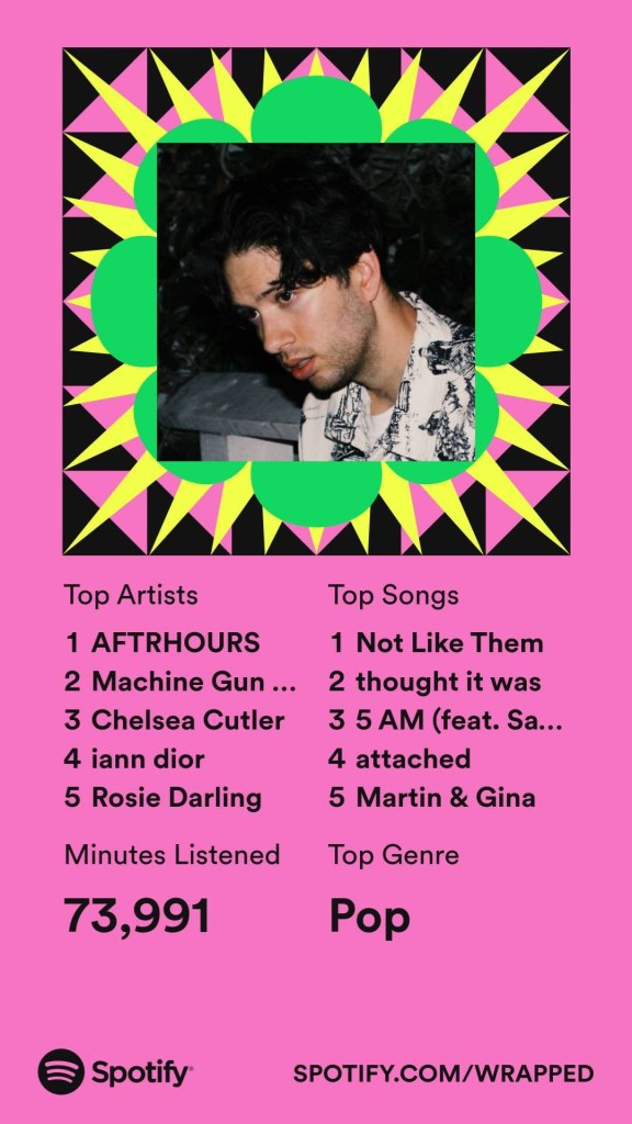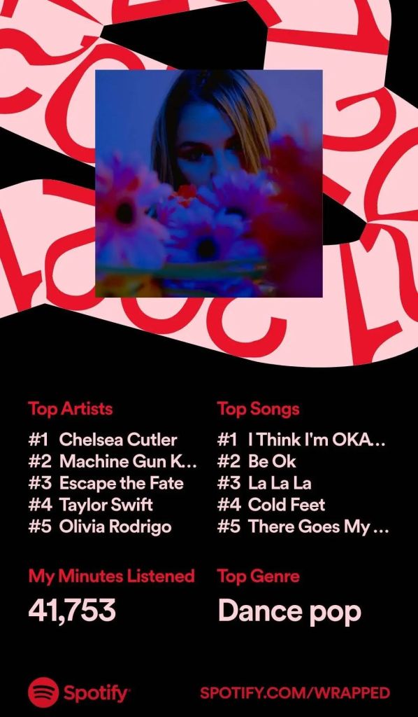 I also probably listened to a little too much Spotify. However, despite seeing her in concert for the third time, this is the first year that Chelsea Cutler has not been my number-one artist!